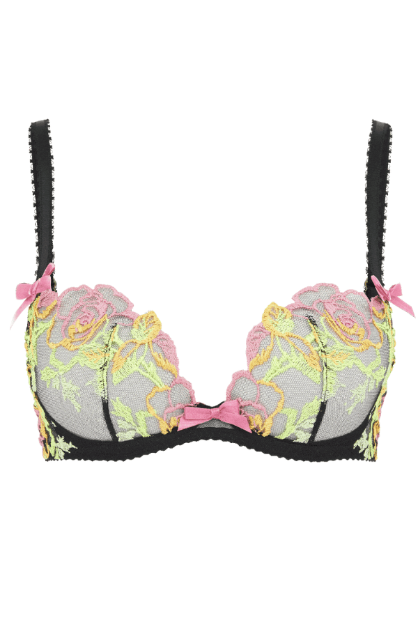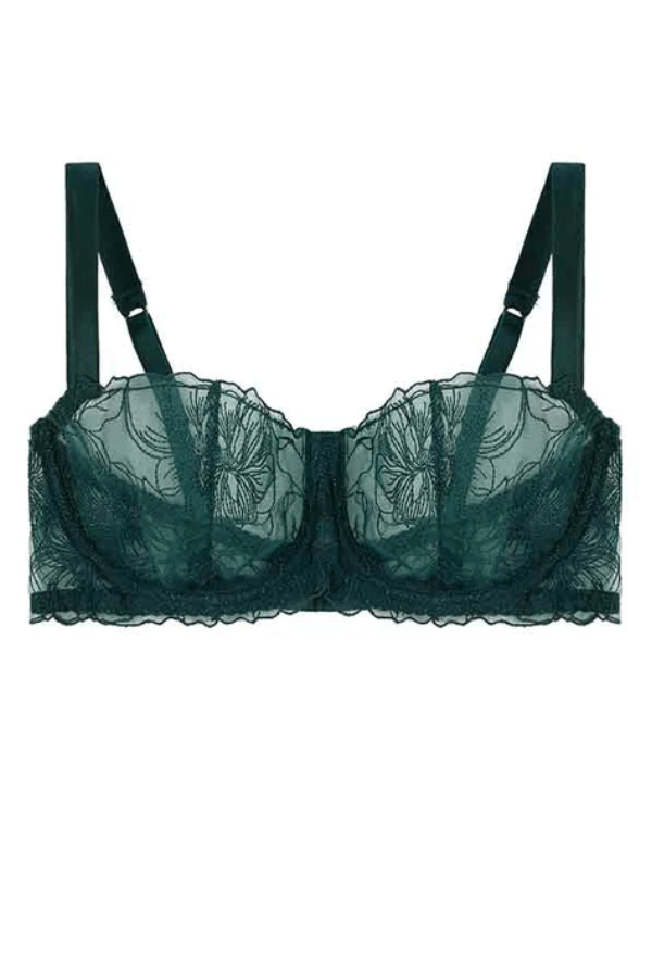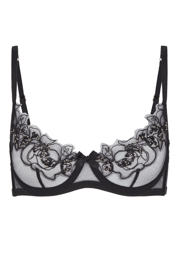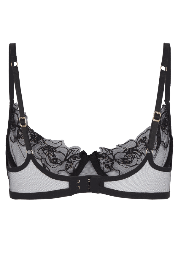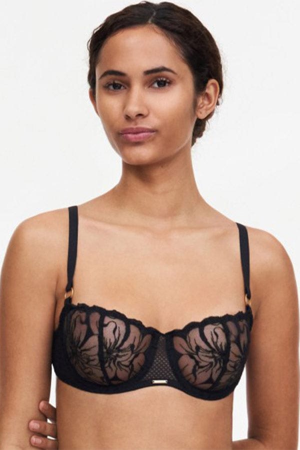Discover this season’s must-have lingerie pieces, loved by our most beloved influencers and content creators. The Chantelle Fleurs Demi Bra is a standout with its lush floral embroidery and seductive transparency. The demi neckline, combined with a soft vertical seam, provides both uplift and a flattering top swell effect. The fishnet lining at the center front and back adds subtle allure while offering extra support, and the fully adjustable straps with gold rings elevate its elegance.