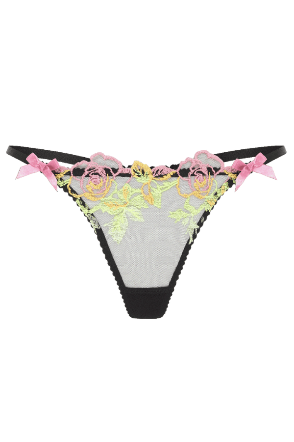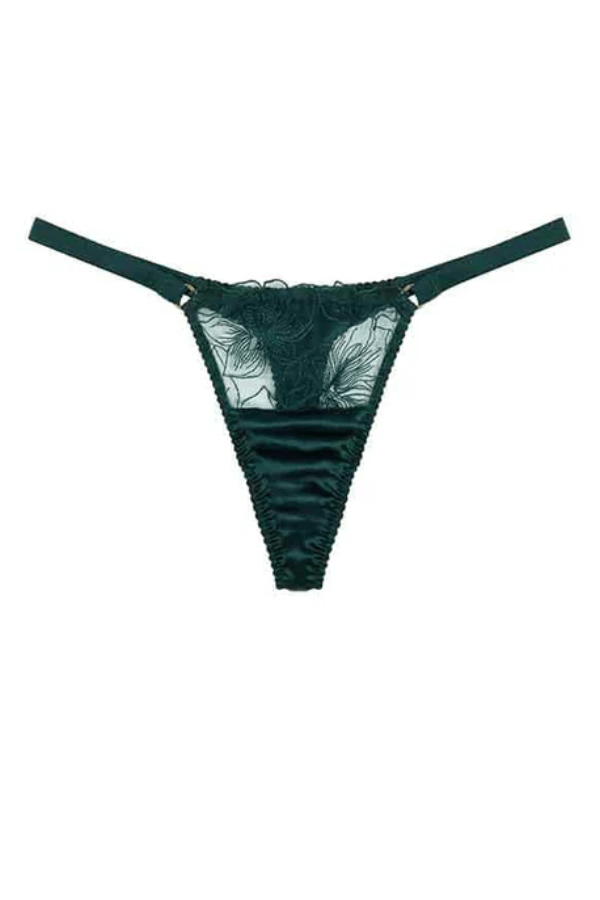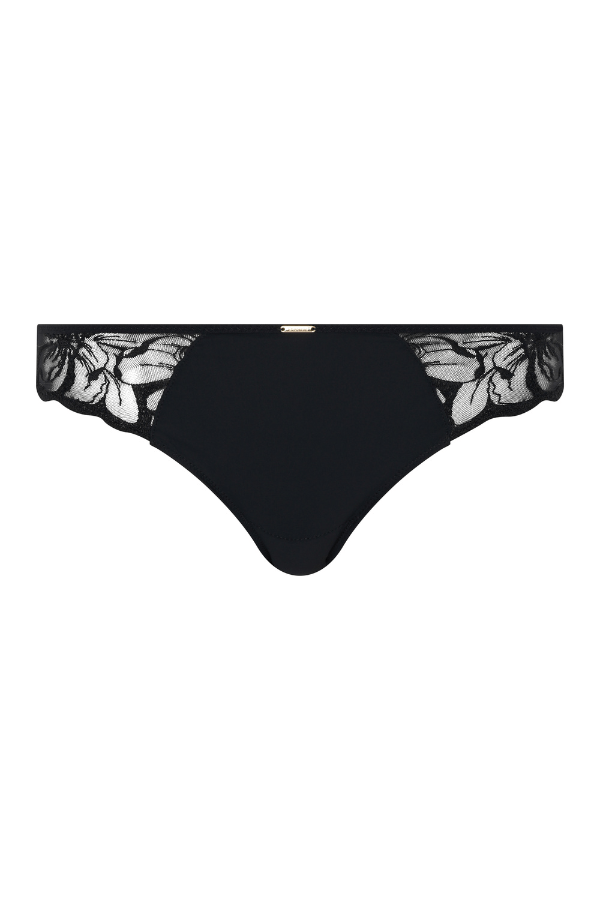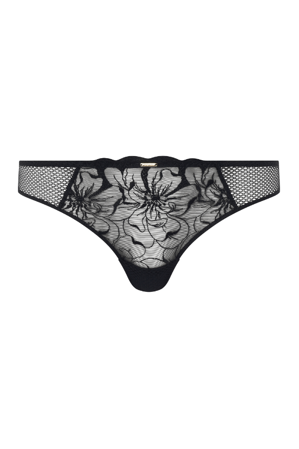 Pair it with the Chantelle Fleurs Thong, which mirrors the bra's enchanting floral embroidery and honeycomb fishnet details. The revealing back and delicately lined hips create a unique and captivating look, perfect for those who appreciate a blend of sophistication and sensuality.