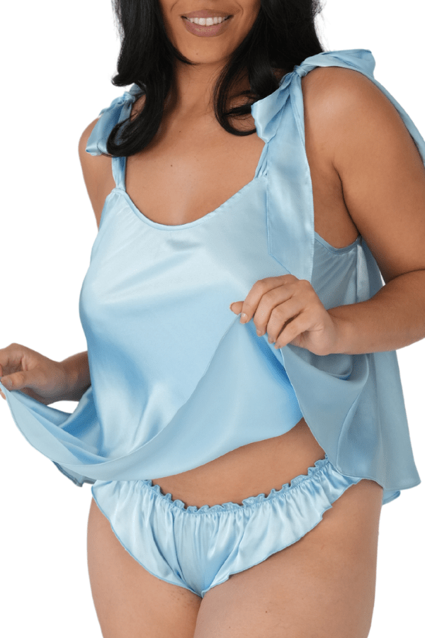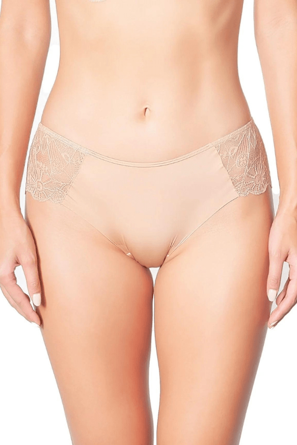 If you prefer full-coverage elegance, the Montelle Salt Spring High Waist Brief in light blue is a dream. With its delicate lace pattern and modern, sporty elastic waist, this panty offers both comfort and femininity. The intricate lace and rose gold hardware make it a luxurious addition to your winter essentials.