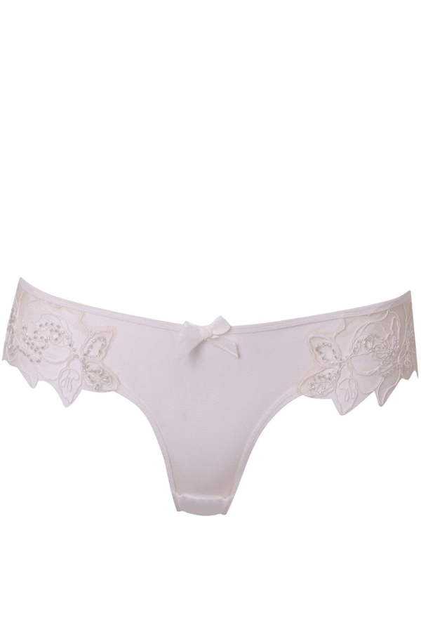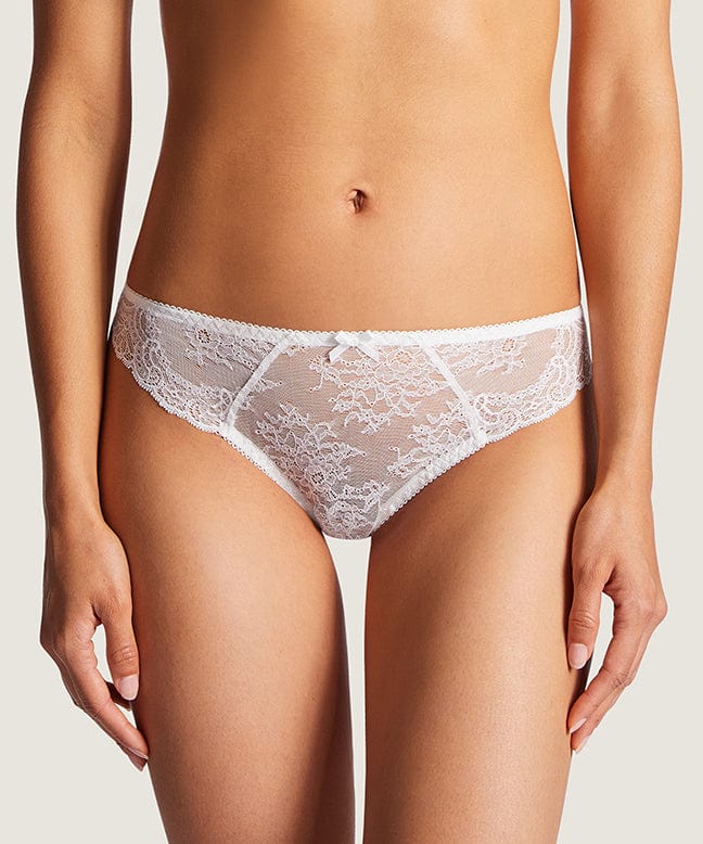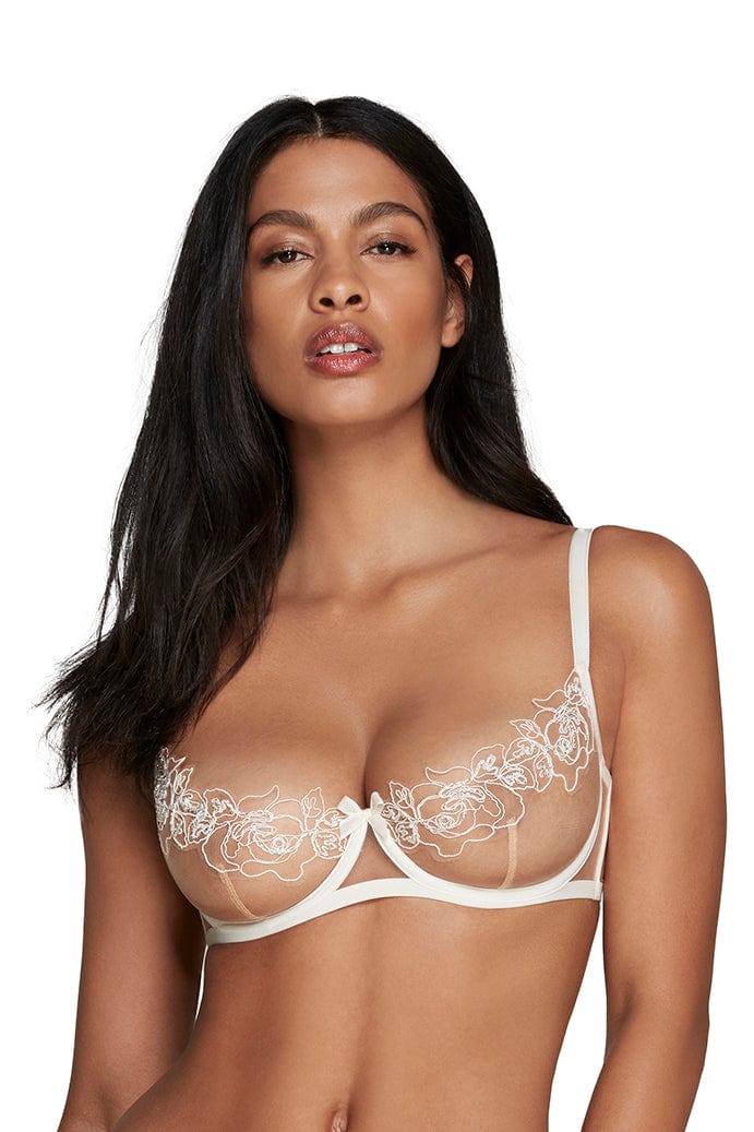 Aubade’s Dans de Sens set is a perfect bridal look for the coquette bride with a more classic romantic style. Delicate lace covers every inch of the decadent pieces, available in balconette and plunge styles. The straps feature ruffled lace, finishing each piece with a sweet bow.