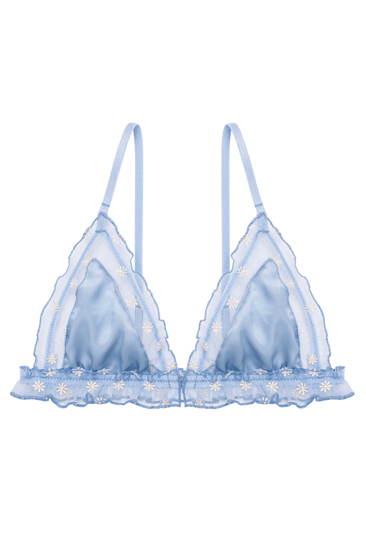 Polish slow fashion brand Le Petit Trou is arguably the most obvious place to start in coquette fashion, and we’re in love with the Paquerette set for brides, though each unique and flirtatious set channels the aesthetic. Light blue mesh ruffles and silk are only elevated by tiny embroidered flowers and a delicate front closure.
