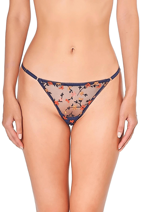 Embrace modern femininity with the Sparkle set from Agent Provocateur. This teal-hued ensemble features delicate embroidered florals adorned with shimmering foil overlays. The plunge braand matching thongexude opulence, with darted demi-cups and a subtle wired design providing both support and allure.