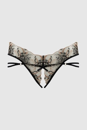 Delilah Embroidered Strappy Crotchless & Backless Hipster Black