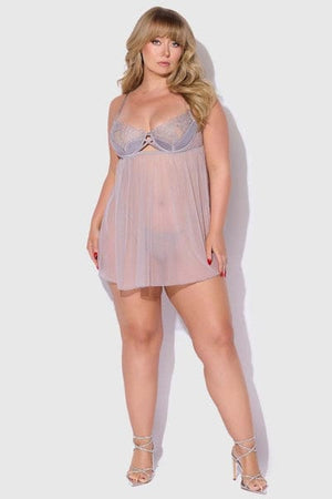Shell: 100% Polyester. Mesh: 88% Nylon, 12% Spandex. Exclusive of trims and elastic. Eden embroidered mesh and satin babydoll for romantic, seductive nights.
