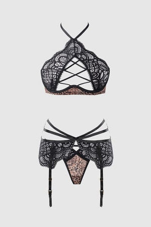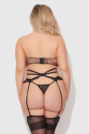 Felicia Leopard Mesh & Lace Bra, Garter & G-String Set Leopard