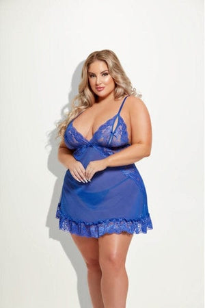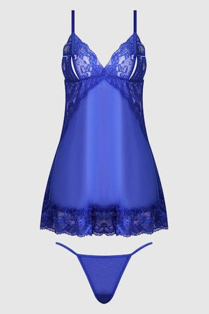 88% Nylon, 12% Spandex. Exclusive of trims and elastic. Harlow lace and mesh babydoll with G-string for flirty, romantic evenings.