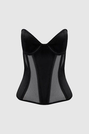 100% Polyester. Exclusive of trims and elastic. Satin and mesh plunge underwire corset from House of Desire, designed to sculpt and enhance your curves. Perfect for romantic evenings or as a statement piece under your favorite outfit.