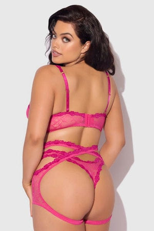 Shell: 88% Nylon, 12% Spandex. Lace: 90% Nylon, 10% Spandex. Exclusive of trims and elastic. Delicate lace bra, garter, and tanga set ideal for exploring intimate moments.
