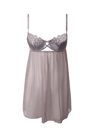 Shell: 100% Polyester. Mesh: 88% Nylon, 12% Spandex. Exclusive of trims and elastic. Eden embroidered mesh and satin babydoll for romantic, seductive nights.