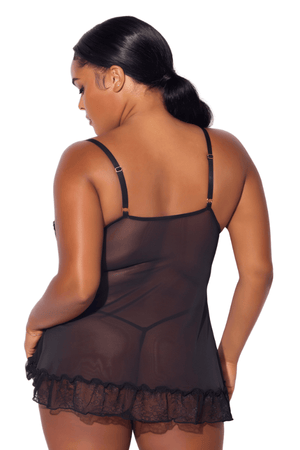 Lace: 88% Nylon, 12% Spandex. Exclusive of trims and elastic. Kiki lace babydoll with G-string set, crafted for flirty, seductive moments.