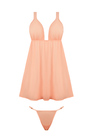 88% Nylon, 12% Spandex. Exclusive of trims and elastic. Shimmer mesh babydoll and G-string set designed to captivate and enhance confidence. Great for romantic evenings or special nights.