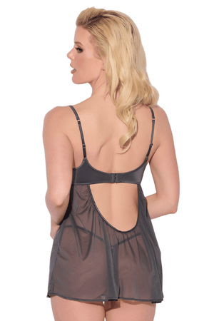 Zoe Oil Slick Openable Cup Underwire Babydoll Set - Graphite