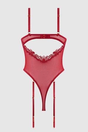 Shell: 100% Polyester. Fabric: 88% Nylon, 12% Spandex. Exclusive of trims and elastic. Elegant Ashley Alexiss lace teddy crafted to enhance modern sensuality.