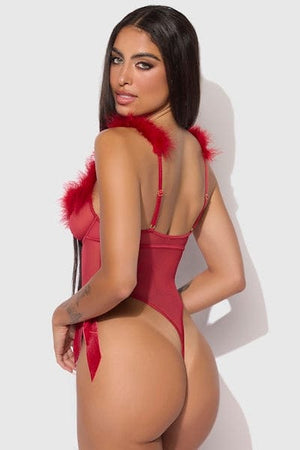 88% Nylon, 12% Spandex. Exclusive of trims and elastic. Marabou and mesh teddy, designed to enhance seductive confidence and romantic evenings.