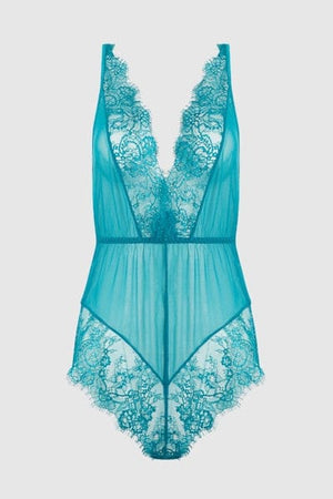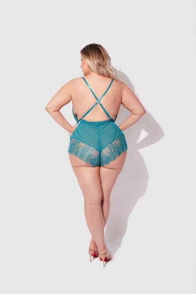 88% Nylon, 12% Spandex. Exclusive of trims and elastic. Mila mesh and eyelash lace high slit romper teddy, perfect for bold, confident expression.