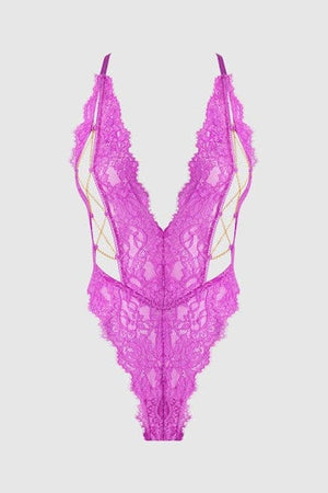 Reanna Lace & Chain Deep Plunge Bodysuit Pink