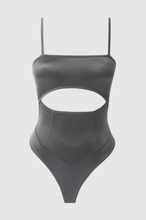 76% Nylon, 24% Spandex. Exclusive of trims and elastic. Cutout scoop back bodysuit in high-shine fabric, ideal for bold self-expression and romantic evenings.