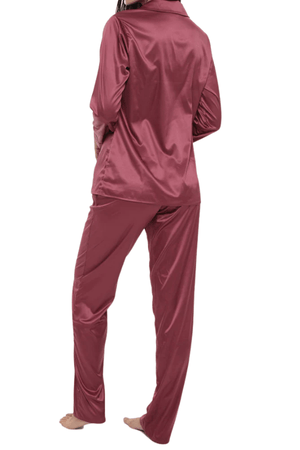 Set of long-sleeved pajama top and pants, in soft, cool fabric that feels like silk.